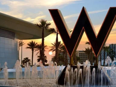 — W Lounge, WET Deck, SUN Deck — бары с коктейлями, закусками и видами на залив или трассу.